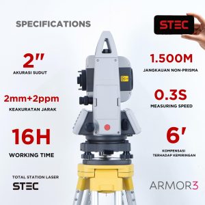 Akurasi: ±(3mm + 2mm × D)